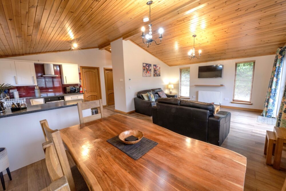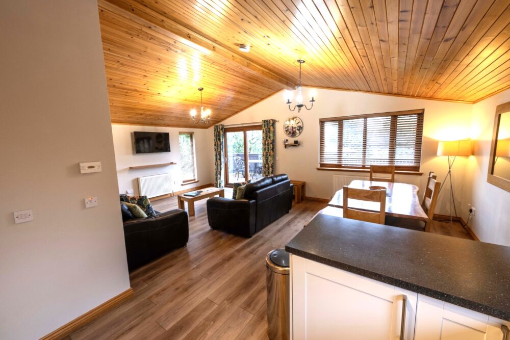 Laurel Lodge 6 is one of a kind on site and is ideal for a family holiday. The master bedroom features a super king bed and there is a second bedroom with twin beds. The open plan living, dining and kitchen area is bright and spacious making it the perfect area to cook together, watch movies, play games or simply relax.